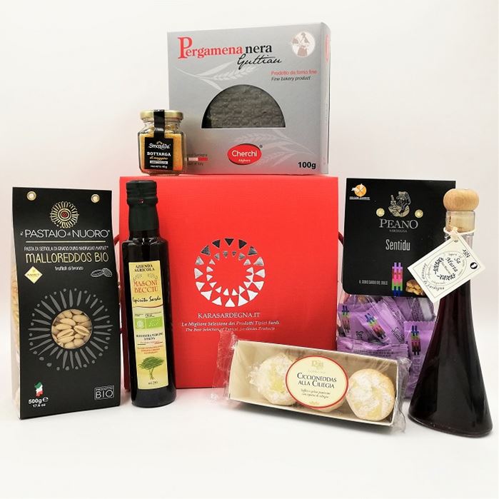 PUO´CONTENERE UNA SELEZIONE 5/6 PRODOTTI TIPICI SARDI. Elegante confezione in cartone rigido da regalare per festeggiare i tuoi momenti speciali. Su richiesta è possibile comporre la confezione con i tuoi prodotti preferiti, scelti sul nostro sito.Come procedere? Una volta inseriti a carrello...