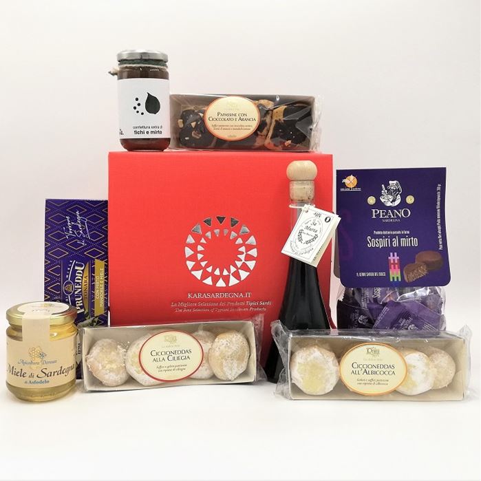 PUO´CONTENERE UNA SELEZIONE 5/6 PRODOTTI TIPICI SARDI. Elegante confezione in cartone rigido da regalare per festeggiare i tuoi momenti speciali. Su richiesta è possibile comporre la confezione con i tuoi prodotti preferiti, scelti sul nostro sito.Come procedere? Una volta inseriti a carrello...