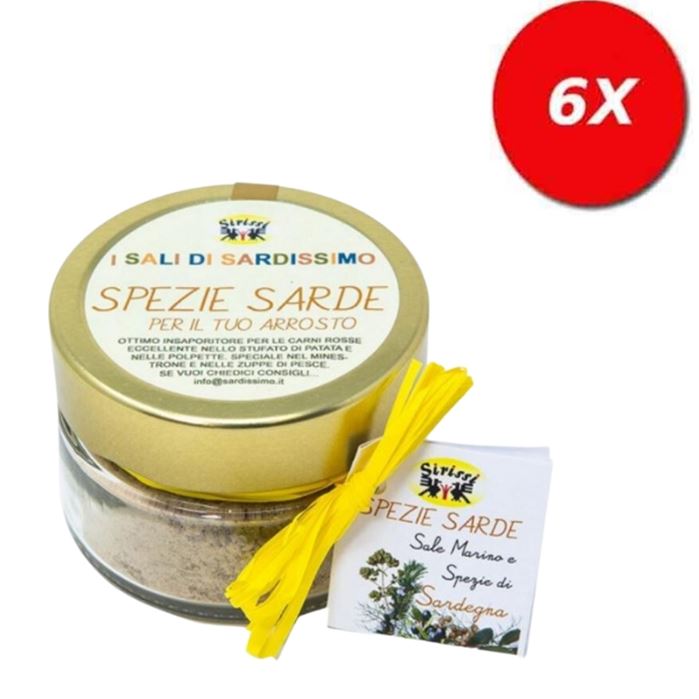 Ingredienti: sale marino di Sardegna, spezie sarde 18% (mirto, coriandolo, finocchietto selvatico, origano, alloro).