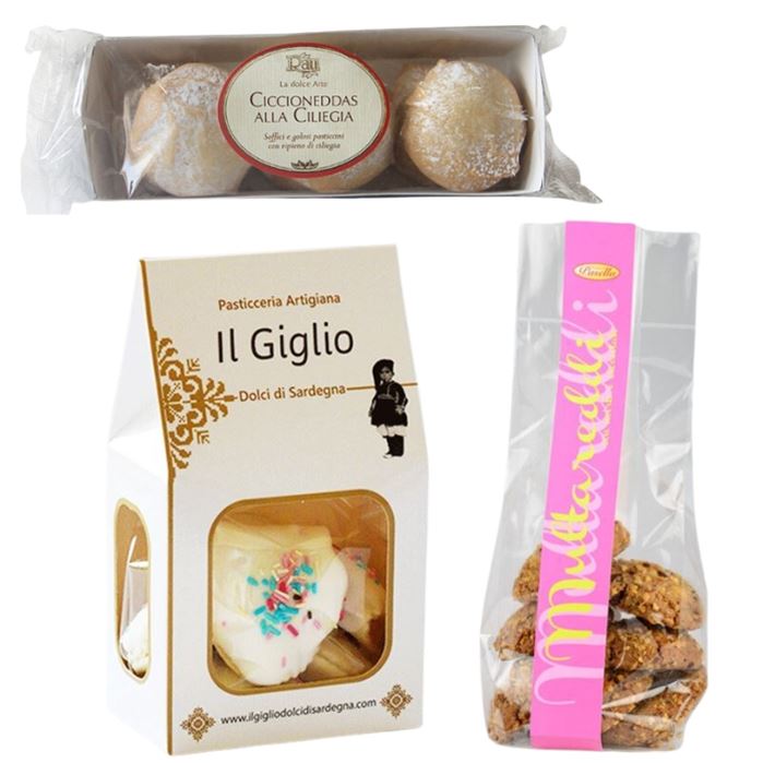 Porta a casa un pezzo di Sardegna con questa confezione di dolci tipici. Ogni prodotto è fatto a mano con cura e passione, per offrirti un'esperienza autentica e indimenticabile.