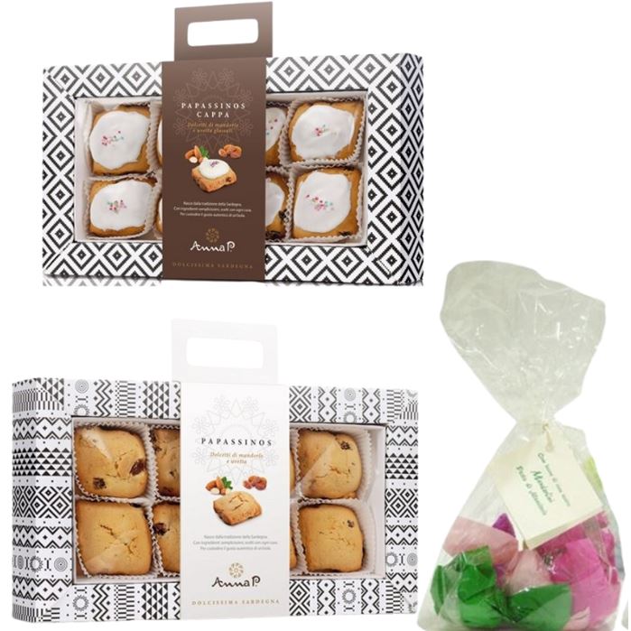 Porta a casa un pezzo di Sardegna con questa confezione di dolci tipici. Ogni prodotto è fatto a mano con cura e passione, per offrirti un'esperienza autentica e indimenticabile.