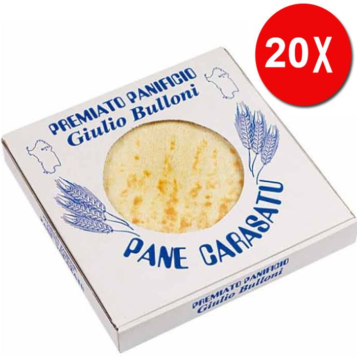 Pane tradizionale tipico prodotto in Sardegna, sottilissimo, fragrante e gustoso, lavorato artigianalmente secondo l´antica ricetta di Bitti, paese d´origine della famiglia fondatrice del Premiato Panificio Giulio Bulloni.Consigli e accostamenti: conservare mediamente per 6 mesi dalla data di confezionamento...