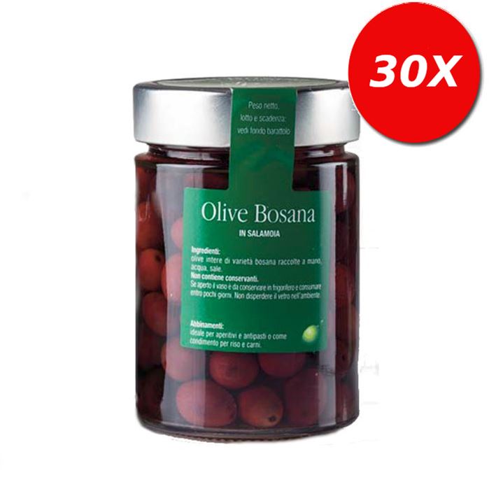 INGREDIENTI: Olive intere di varietà "Bosana" raccolte a mano: 60%; acqua: 38%; sale marino: 2%.