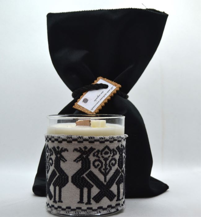La candela è confezionata in un sacchetto di velluto nero (un rimando anch´esso al velluto utilizzato negli abiti tradizionali).