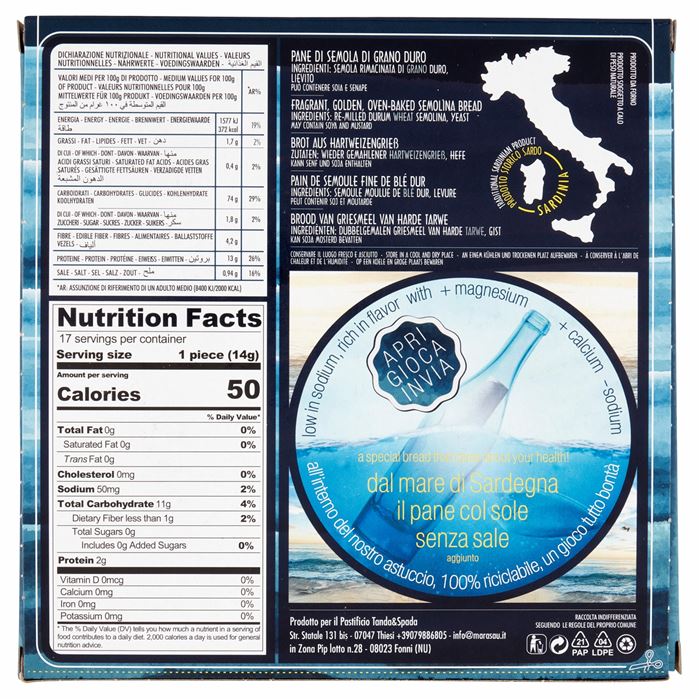 Consegna a € 9,99Il primo e unico pane carasau impastato con l'acqua di mare della Sardegna.