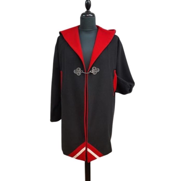 Confezionato in tessuto nero e rosso in pura lana foderato.
