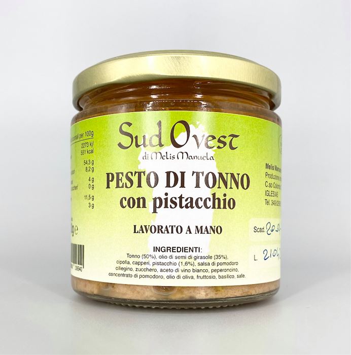 Consegna a € 10,98INGREDIENTI: Tonno, olio di semi di girasole, cipolla, capperi, pistacchio, salsa di pomodoro ciliegino, zucchero, aceto di vino bianco, peperoncino, concentrato di pomodoro, olio di oliva, fruttosio, basilico, sale.