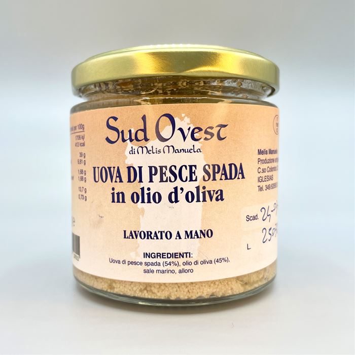 Consegna a € 10,98INGREDIENTI: Uovo di pesce spada, olio di oliva, sale marino, alloro.