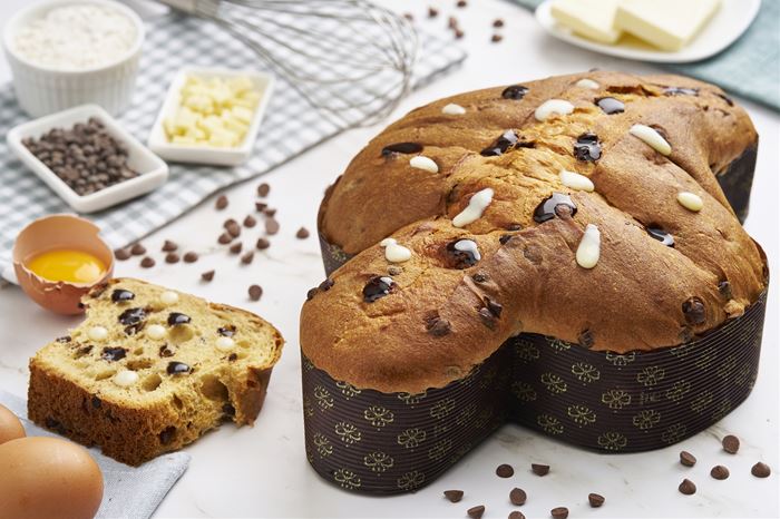 La nostra colomba ai tre cioccolati si caratterizza per un impasto soffice e morbido ricco di gocce di cioccolato fondente, bianco e al latte, di un colore marrone chiaro ed un profumo di uova, burro, cioccolato, vaniglia e zucchero.