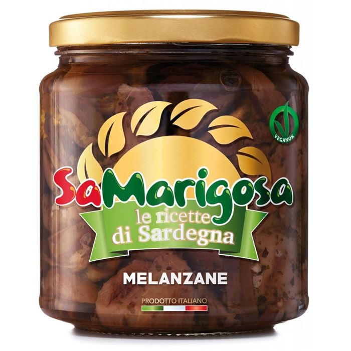 Le deliziose melanzane della Sardegna, sapientemente ricettate per creare le Melanzane della Nonna. Il loro sapore è esaltato da un mix di spezie semplici e delicate, abbinate in armonia per creare un sapore avvolgente e gustoso. Sono utilizzate come antipasto o per decorare originali tartine e torte salate.