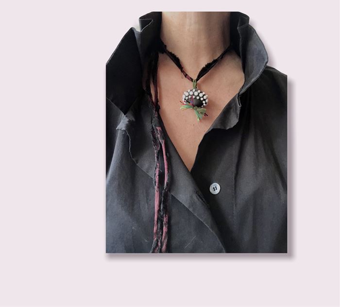 Frutto di una rivisitazione del caratteristico ornamento del costume tradizionale sardo, solitamente lavorati in filigrana d'oro e d'argento, sono reinterpretati e proposti in diversi modelli e varianti cromatiche. Impreziositi con filati e tessuti pregiati, diventano ciondoli, bottoni e anelli, oggetti dal forte valore identitario, declinato con gusto moderno e sofisticato.