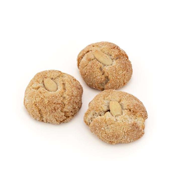 Ingredienti: MANDORLE, zucchero, albume d'UOVO, MANDORLE amare, lievito, aroma di vaniglia, aroma di limone, aroma fior d'arancio.