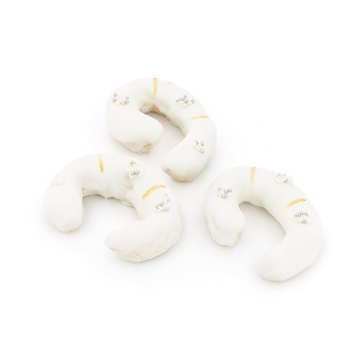 Consegna a € 12,20Dolce tipico di piccole dimensioni, si tratta di un biscotto dalla pasta dura e croccante di colore dorato, dalle forme stilizzate...ricoperto di glassa bianca decorata con mascarponi dorati o argentati e con fregi dorati.