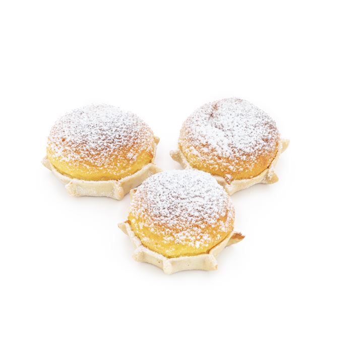 Ingredienti: farina di GRANO tenero tipo 00, ricotta ovina (siero di LATTE di pecora, LATTE di pecora, sale), acqua, zucchero, strutto, tuorlo d'UOVO, lievito, zucchero a velo (zucchero, amido di FRUMENTO, grassi vegetali non idrogenati di palma), aroma di limone, aroma di arancio, zafferano.