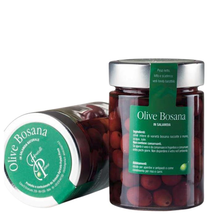 Le Olive Bosana in Salamoia Naturale dei Fratelli Pinna sono un prodotto genuino e tradizionale, preparato con olive di alta qualità e lavorato con metodi naturali. Perfette per arricchire antipasti, accompagnare formaggi o aggiungere un tocco gourmet ai tuoi piatti, rappresentano un'eccellenza della cucina artigianale.