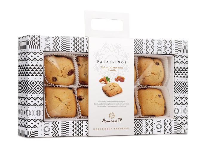 Sono dolcetti con mandorle e uvetta, tipici della tradizione sarda. Gradevoli con il caffè o con il thè del pomeriggio, sono indicati nella dieta dello sport per il loro apporto calorico.
