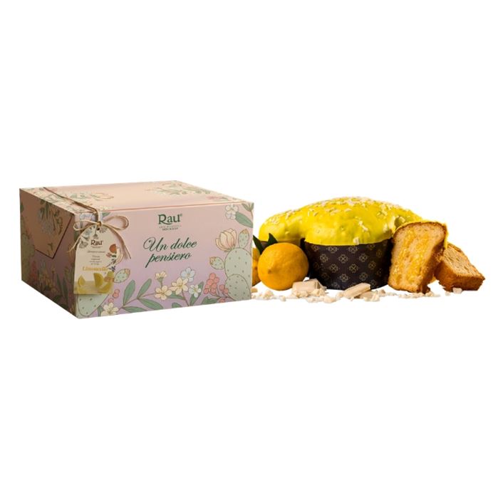 Prodotto dolciario da forno a lievitazione naturale senza uvetta e senza canditi in pezzi, glassato e farcito con crema al limoncello.